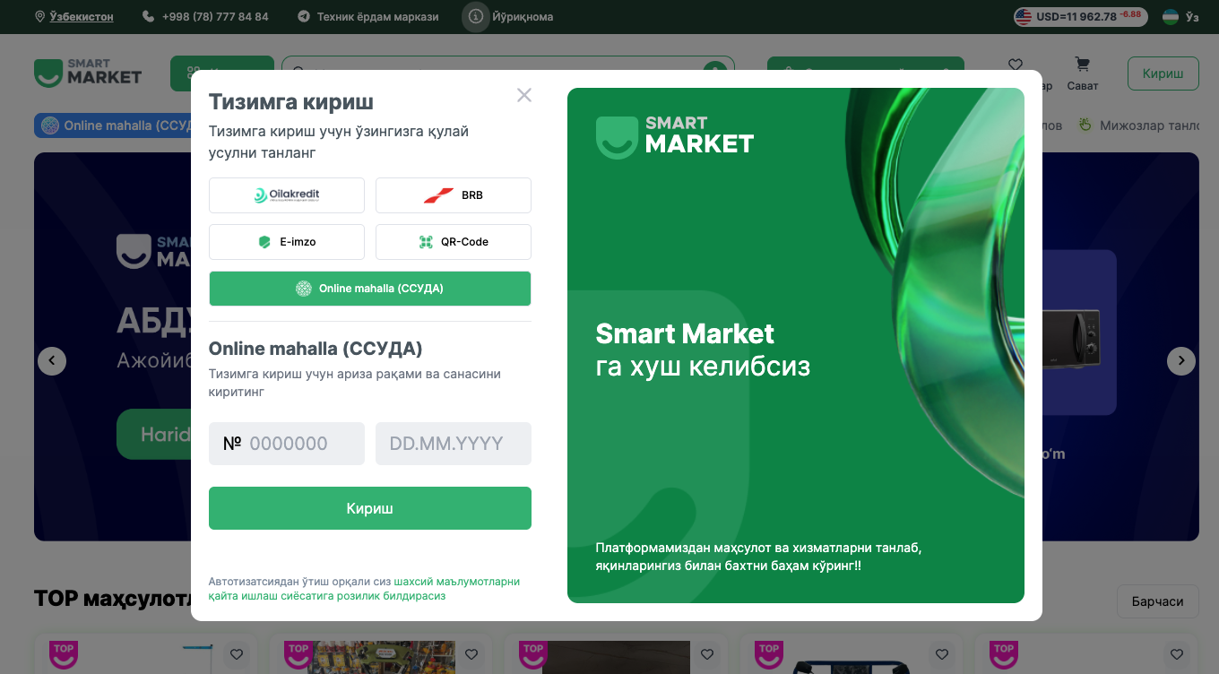 © 2021-2026 — «Smart Marketplace» AJ. Barcha huquqlar himoyalangan.